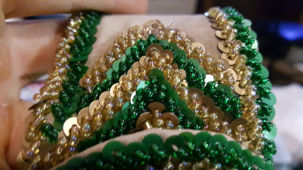 Once the navettes were in place time for beading, I started down the guide lines and repeated the process.